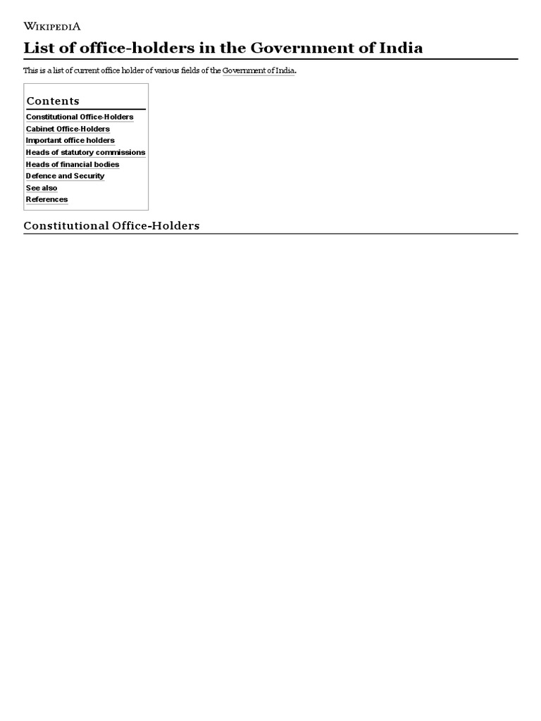 List of OfficeHolders in The Government of India Wikipedia PDF List Of Office Holders Read this article for the list of the office holders in india. 10 rows this is a list of current office holder of various fields in government of india. These are lists of incumbents (individuals holding. We will update this list as. Heads of state and government. updated list of the financial body heads, bureaucrats e.t.c.is vital for. List Of Office Holders.